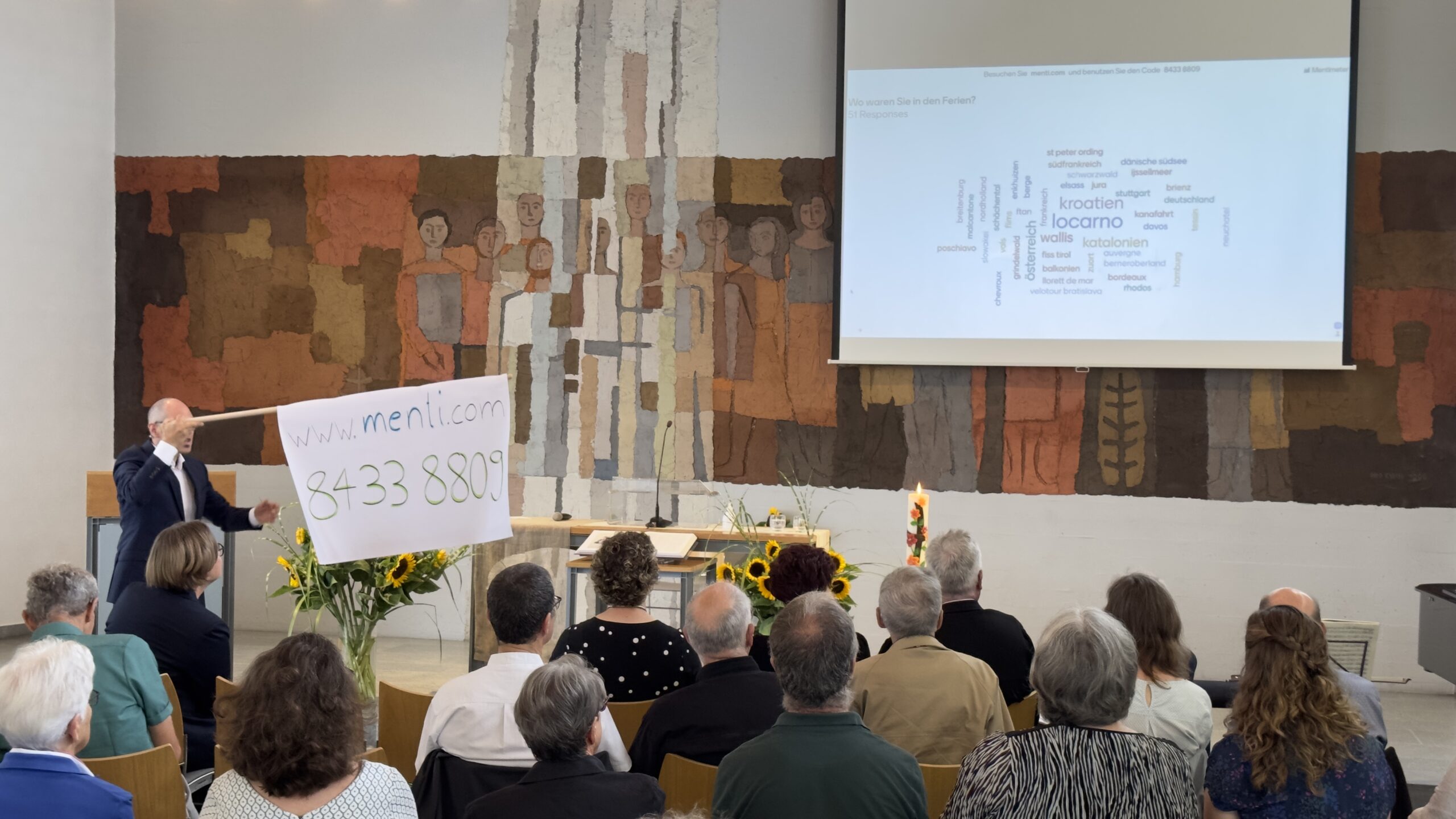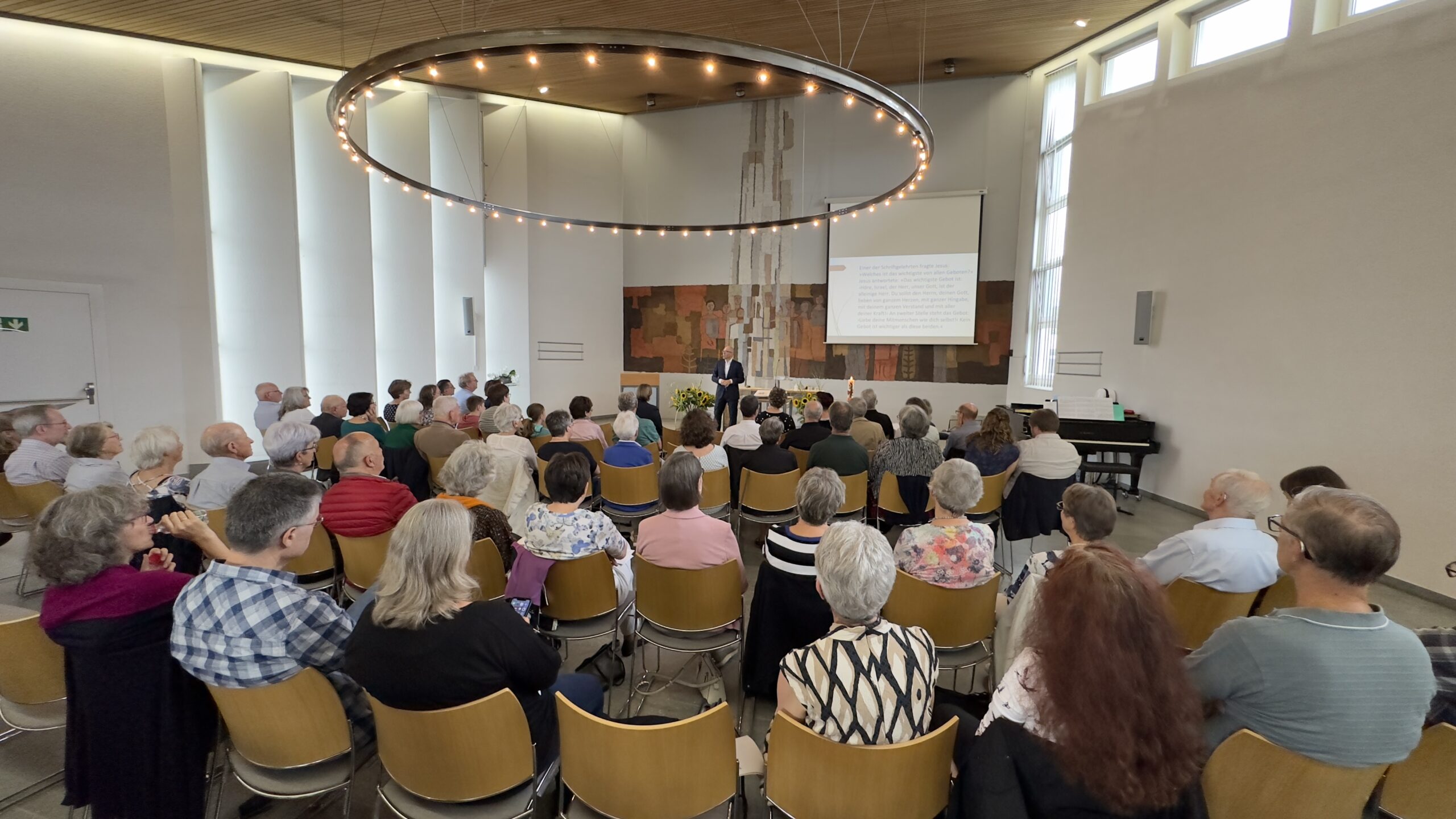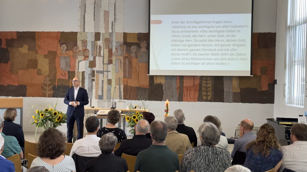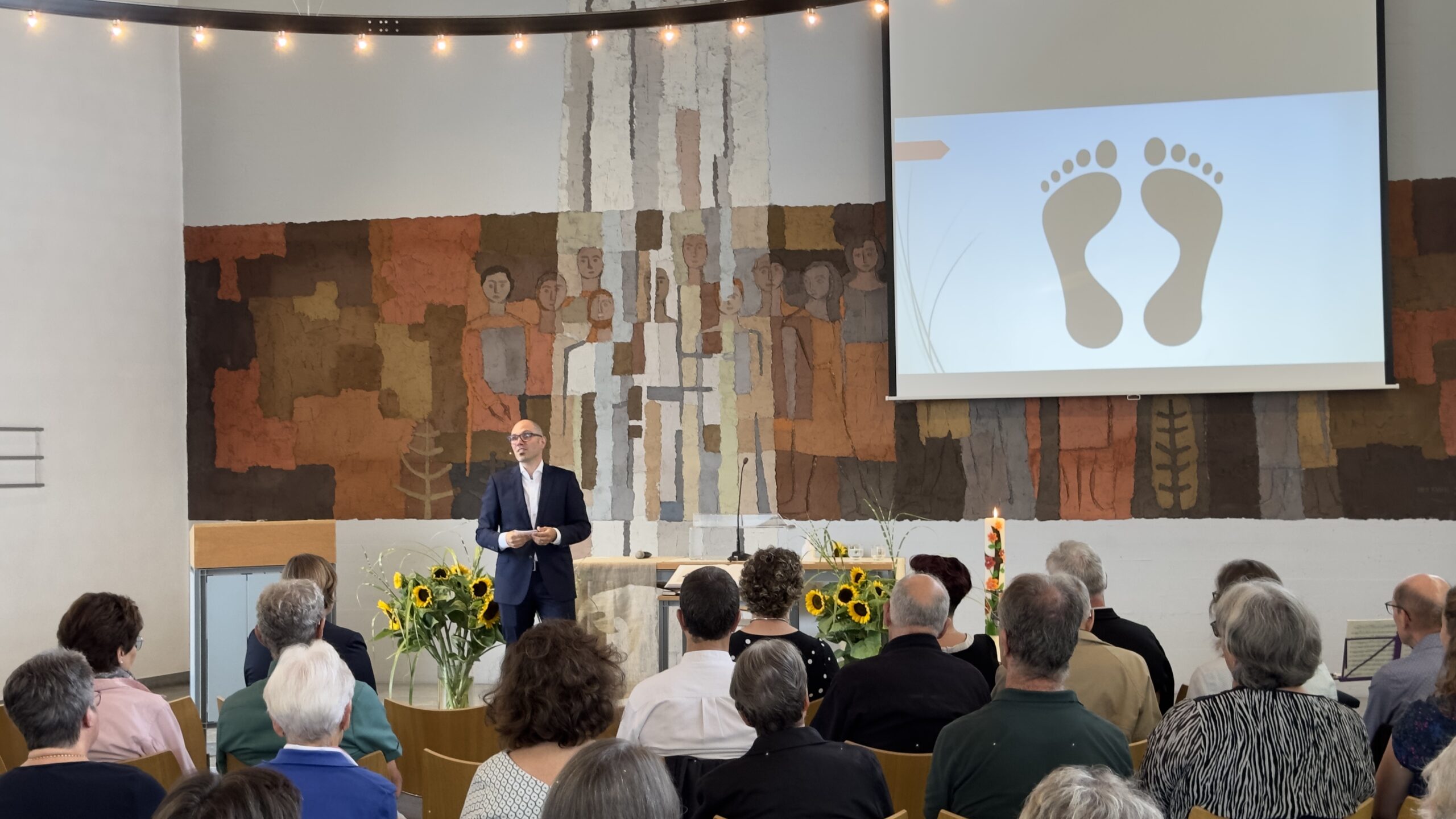 Sehr erfreulich war die Predigt von Sozialdiakon Simon Wälchli zum höchsten Gebot «Du sollst deinen Gott lieben von ganzem Herzen und deinen Nächsten wie dich selbst.» Eine digitale Umfrage, an der die Gäste per Smartphone ihre Antworten geben konnten, holte alle in das Thema der Liebe zu anderen und zu sich selbst herein. Es war eindrücklich, wie engagiert Simon Wälchli mit dem Publikum interagierte und dabei die wesentlichen Schritte zu einem gelingenden Miteinander im Geist Gottes darlegte.