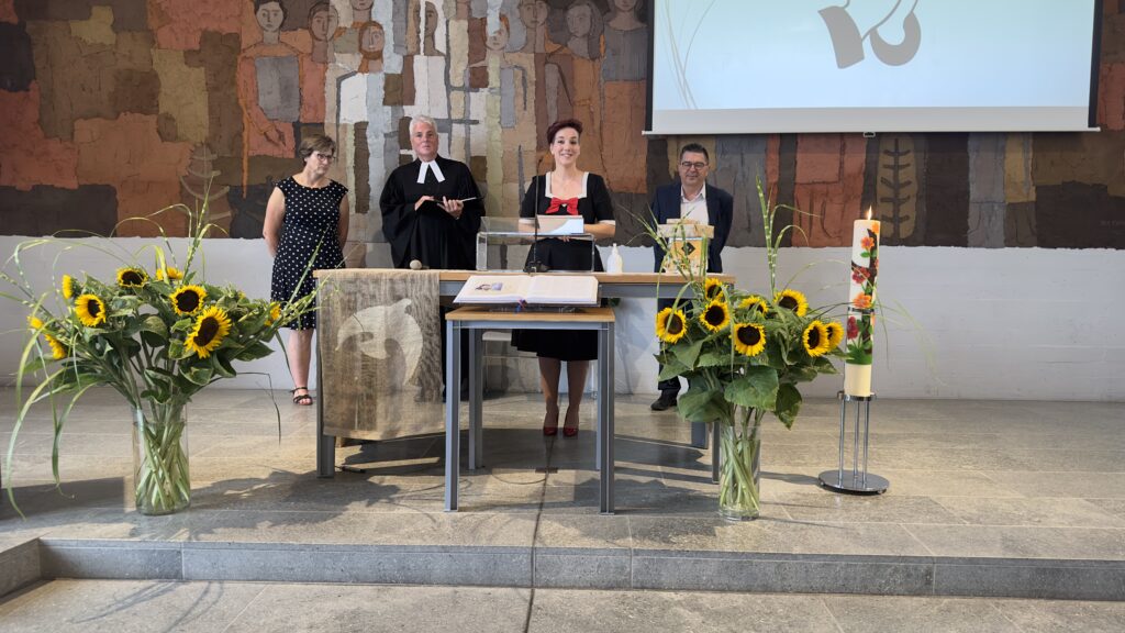 DEM | In einem feierlichen Gottesdienst wurde am 27. August Simon Wälchli von der Dekanin Birgit Wintzer in sein Amt als Sozialdiakon in der Kirchgemeinde Mellingen Rohrdorf Fislisbach eingesetzt. Gemeinsam mit persönlichen Bibelworten von sechs Kirchgemeindemitgliedern, mit Begrüssungsworten von Kirchgemeindepräsidentin Nadja Hard, vom Vizepräsidenten Rolf Arnold, von Kirchenrätin Barbara Stüssi-Lauterburg und vom Katholischen Pastoralraum am Rohrdorferberg, vertreten durch Diakon Josef Bürge, wurde Simon Wälchli freudig begrüsst. «Man spürt die herzliche Willkommenskultur in dieser Kirchgemeinde», meinte ein geladener Gast. Anschliessend trafen sich die Gottesdienstbesucher*innen im Kirchgemeindehaus zu einem üppigen Apéro.
