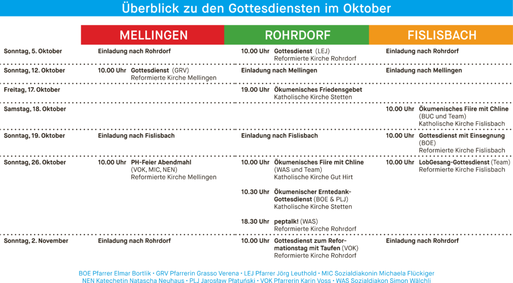 In unserer Kirchgemeinde gibt es eine Vielzahl von Angeboten und Veranstaltungen für jede Altersgruppe. Termine und nähere Angaben finden Sie in unserem «Wegweiser», dem 2. Bund der Zeitung «reformiert.»